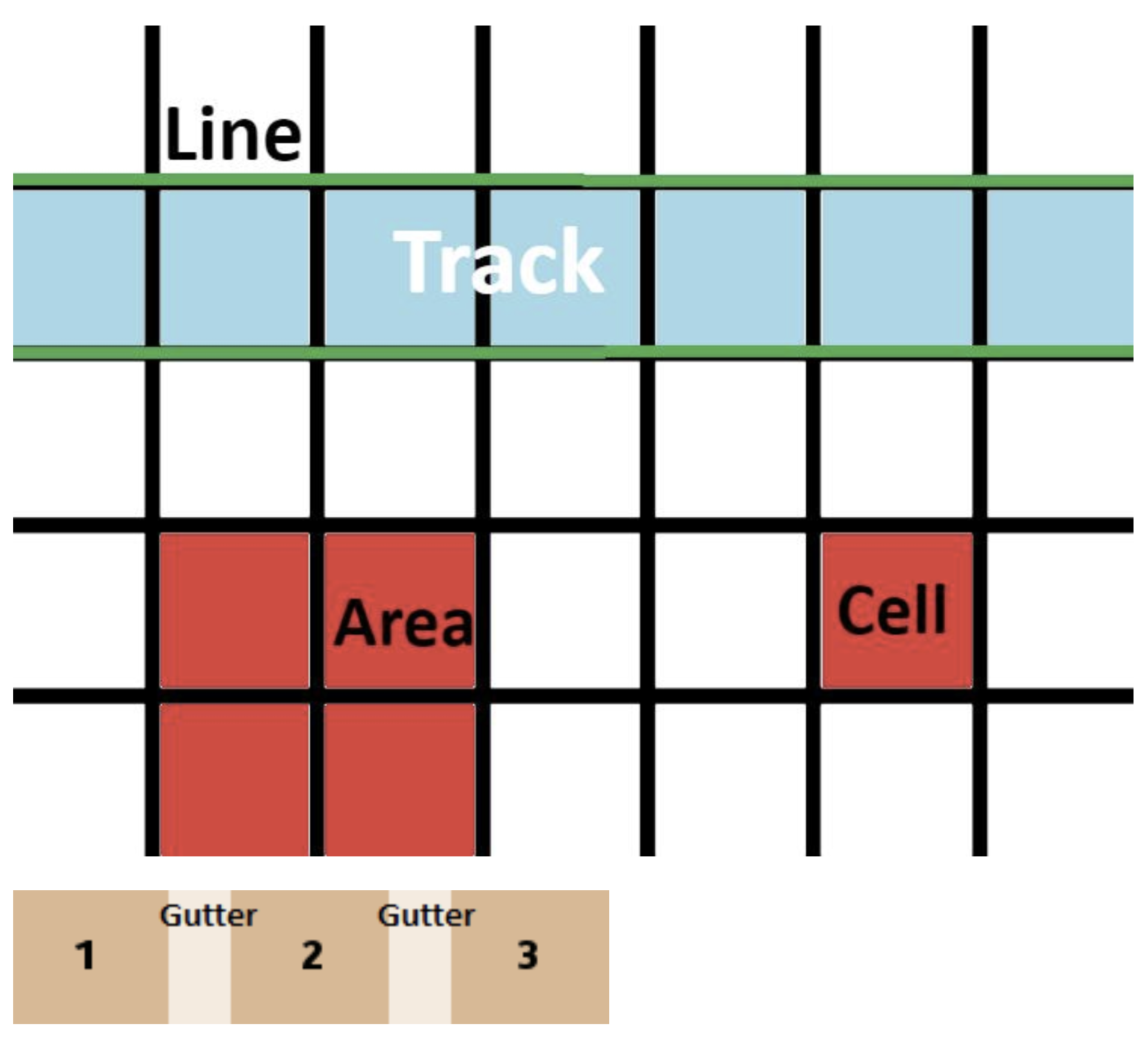 - Gutter: Space between cells.